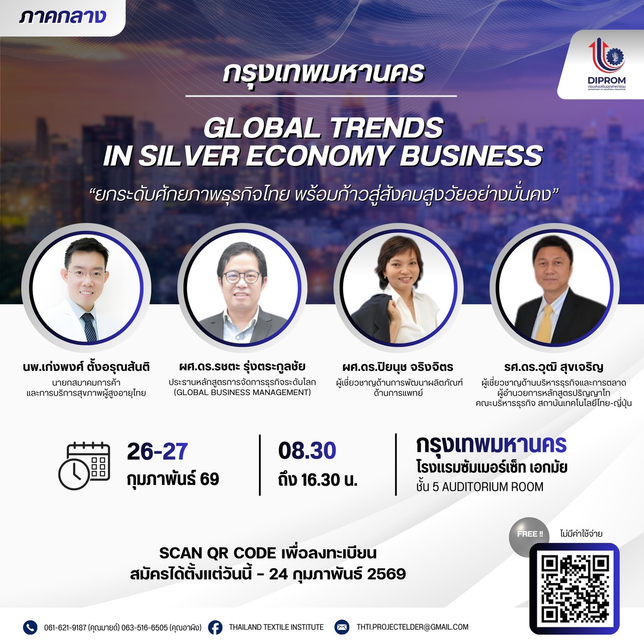 #SilverEconomy #AgingSociety #GlobalTrends2026 #DIPROM #ธุรกิจผู้สูงวัย #อบรมฟรี #พัฒนาผู้ประกอบการ #โอกาสธุรกิจ #กลยุทธ์ธุรกิจ #ตลาดผู้สูงวัย #InnovationForAging #IndustryTraining