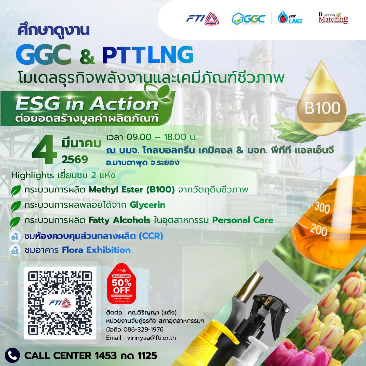 สภาอุตสาหกรรมแห่งประเทศไทย ขอเชิญผู้ประกอบการและผู้สนใจเข้าร่วมกิจกรรมศึกษาดูงาน “GGC & PTT LNG: โมเดลธุรกิจพลังงานและเคมีภัณฑ์ชีวภาพ ESG in Action ต่อยอดสร้างมูลค่าผลิตภัณฑ์”