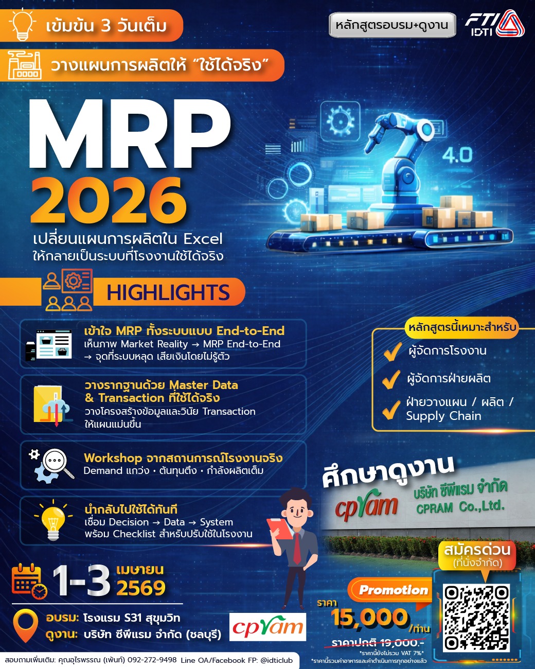 เปิดรับสมัคร MRP 2026 อบรมวางแผนการผลิต 1–3 เม.ย. 2569 พร้อมดูงาน CP RAM