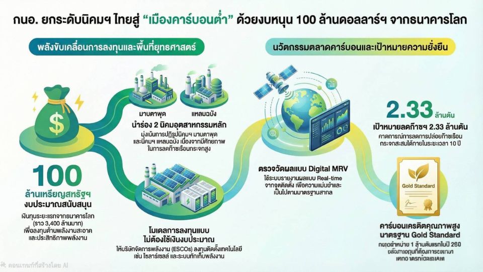 #กนอ #การนิคมอุตสาหกรรมแห่งประเทศไทย #นิคมคาร์บอนต่ำ #LowCarbonCity #CarbonMarket #CarbonCredit #NetZero #GreenIndustry #พลังงานหมุนเวียน #RenewableEnergy #EnergyEfficiency #DigitalMRV #GoldStandard #ESG #CBAM #FDI #WorldBank #เศรษฐกิจสีเขียว #อุตสาหกรรมยั่งยืน #MReportTH #IndustryNews