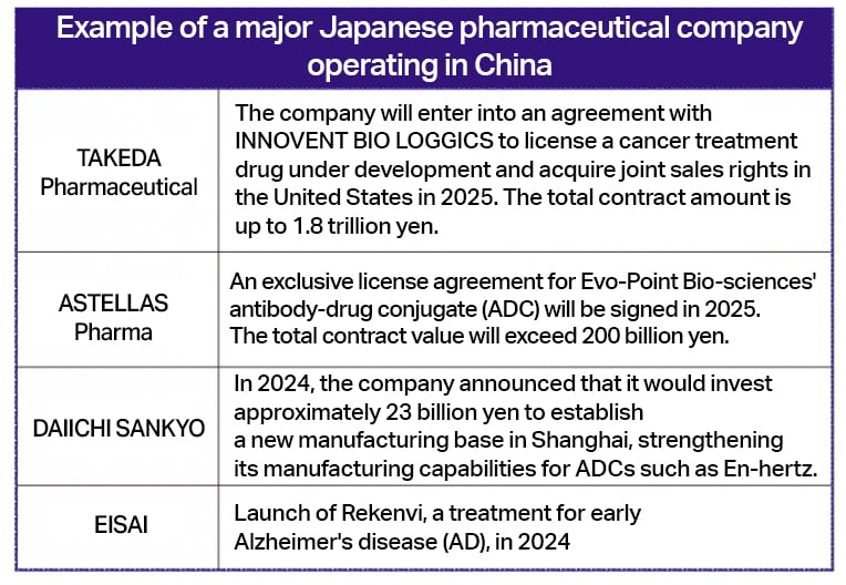 แม้ตลาดยาจีนจะชะลอตัว แต่ด้วยมูลค่ากว่า 166,100 ล้านดอลลาร์สหรัฐ ในปี 2567 (ข้อมูลจาก IQVIA) ทำให้ยังเป็นตลาดใหญ่อันดับ 2 ของโลก บริษัทญี่ปุ่นยังคงมองจีนเป็นตลาดสำคัญ