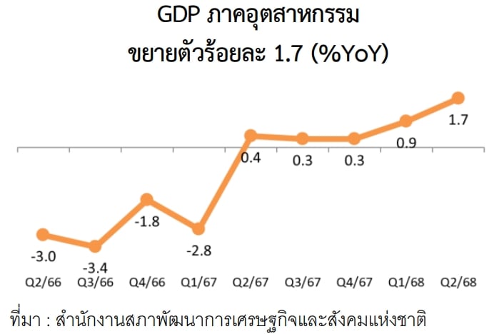 ขณะที่ GDP ภาคอุตสาหกรรม ขยายตัว 1.7% เพิ่มขึ้นจากไตรมาสก่อน และสูงกว่าปีก่อนที่ขยายตัวเพียง 0.4%