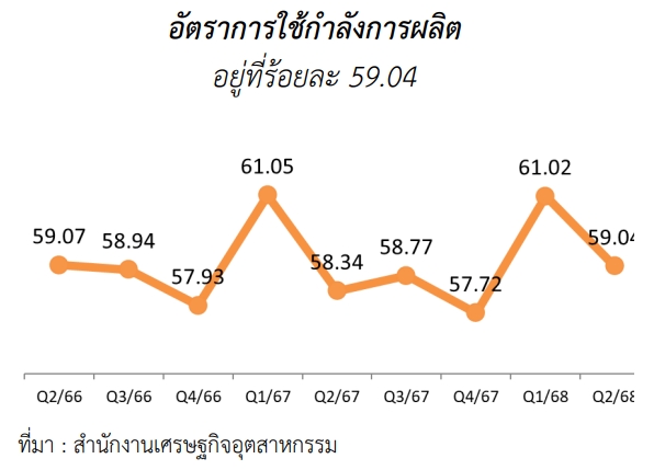 - อัตราการใช้กำลังการผลิต อยู่ที่ 59.04% ลดลงจากไตรมาสก่อน แต่เพิ่มขึ้นเล็กน้อยเมื่อเทียบกับปีก่อน