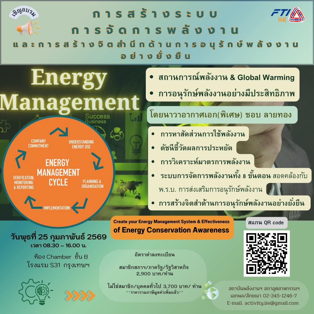 #สภาอุตสาหกรรมแห่งประเทศไทย #สถาบันพลังงานเพื่ออุตสาหกรรม #การจัดการพลังงาน #อนุรักษ์พลังงาน #EnergyManagement #EnergyConservation #พลังงานอย่างยั่งยืน #ลดต้นทุนพลังงาน #อุตสาหกรรมสีเขียว #ความยั่งยืน #ESG #IndustryTraining #MReportTH