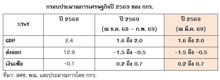 กกร.ประเมินเศรษฐกิจไทย มี.ค. 2569 หั่น GDP เหลือ 1.3–1.6% จับตาน้ำมัน-ภาษีสหรัฐฯ