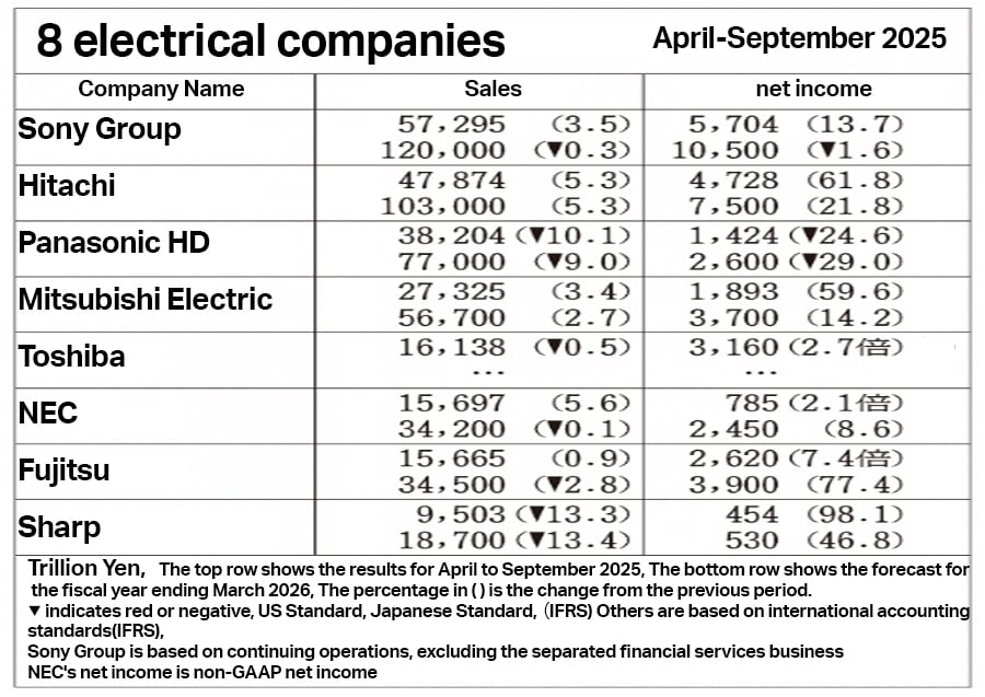 บริษัทอิเล็กทรอนิกส์รายใหญ่ของญี่ปุ่น 8 แห่งยังคงแสดงผลการดำเนินงานที่แข็งแกร่ง โดยหลังการประกาศงบการเงินรวมช่วงเดือนเมษายน–กันยายน ปี 2025 พบว่ามีถึง 5 บริษัทที่ปรับเพิ่มคาดการณ์ผลประกอบการสำหรับปีงบประมาณสิ้นสุดเดือนมีนาคม 2026 สะท้อนแรงขับเคลื่อนจากความต้องการด้าน ปัญญาประดิษฐ์ (AI), ศูนย์ข้อมูล (Data Center) และโครงสร้างพื้นฐานด้านไฟฟ้า ที่เติบโตต่อเนื่อง